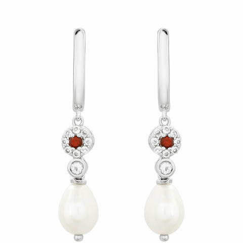 Ezüst Fülbevaló Gránáttal és Fehér Édesvízi Kagylógyönggyel, PCY11439 fülbevaló termékleírás