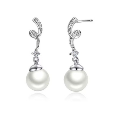 Ezüstből készült, vintage stílusú lógós fülbevaló fehér gyöngyökkel. Súlya 1.8 g.