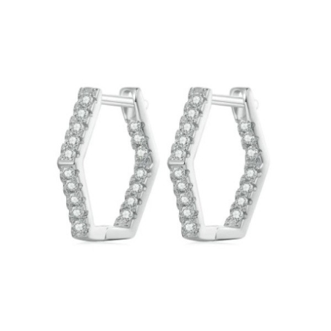 Ezüstből készült hatszög alakú, fehér cirkóniumkristállyal díszített női fülbevaló. Mérete 1.4 × 0.2 cm, belső átmérője 1.0 cm, súlya 1.6 g.
