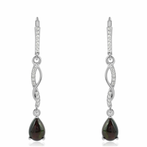 1 kép Ezüst Fülbevaló Lega Dembi Éjfekete Etiópiai Opállal és Fehér Topázzal, ROS317
