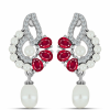 Teljes Ezüst Fülbevaló Madagaszkári Rubinnal és Fehér Édesvízi Kagylógyönggyel, Y62072 termékleírás