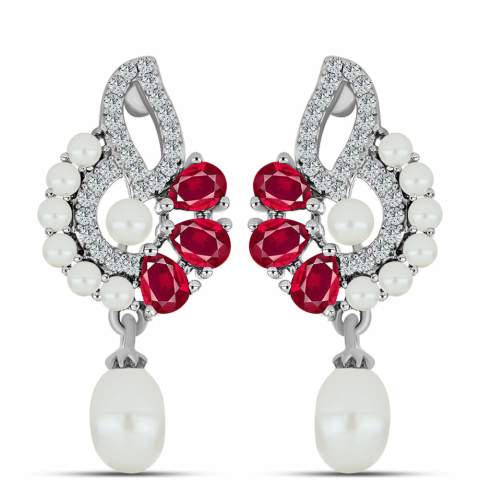 Ezüst Fülbevaló Madagaszkári Rubinnal és Fehér Édesvízi Kagylógyönggyel, Y62072 fülbevaló termékleírás