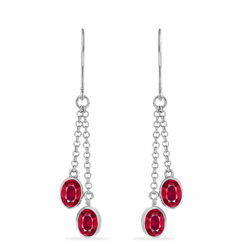 Teljes Ezüst Fülbevaló Madagaszkári Rubinnal és Fehér Gyémánttal, Y58495 termékleírás