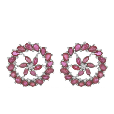Ezüst Fülbevaló Madagaszkári Rubinnal és Fehér Topázzal, Y49069