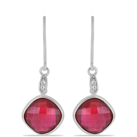 1 kép    Ezüst Fülbevaló Madagaszkári Rubinnal és Fehér Topázzal, Y54067