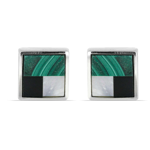Elegáns ezüst fülbevaló malachittal, gyöngyházzal és fekete onixszal ✨ Ez a gyönyörű ezüst fülbevaló egyedi megjelenést kölcsönöz viselőjének. A malachit, gyöngyház és fekete onix kombinációja lenyűgöző színjátékot és textúrát biztosít. A négyzet al...