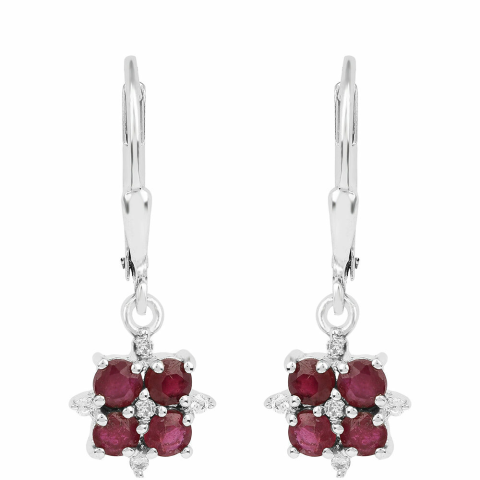 1 kép Ezüst Fülbevaló Thai Rubinnal és Fehér Cirkónnal, TGJ0200