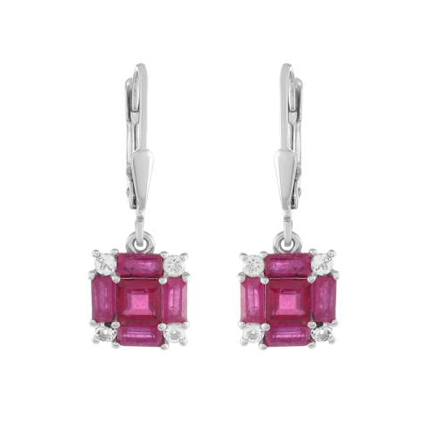 Ezüst Fülbevaló Thai Rubinnal és Fehér Topázzal, PCY10964