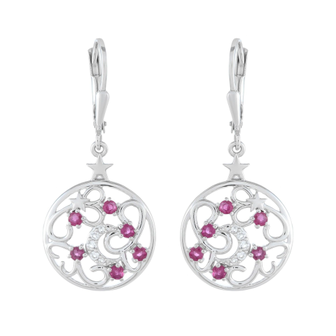1 kép Ezüst Fülbevaló Thai Rubinnal és Fehér Topázzal, PCY10969