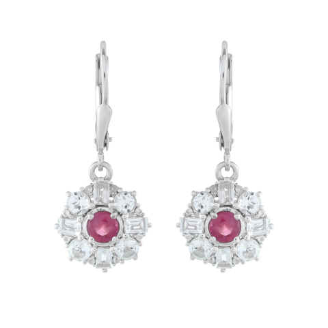 1 kép Ezüst Fülbevaló Thai Rubinnal és Fehér Topázzal, PCY10997