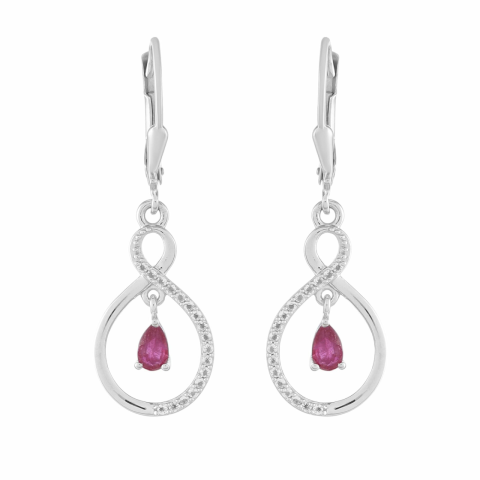 1 kép Ezüst Fülbevaló Thai Rubinnal és Fehér Topázzal, PCY10998
