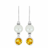 1 kép Ezüst Fülbevaló Ural Citrinnel és Fehér Édesvízi Tenyésztett Gyönggyel, Y60496