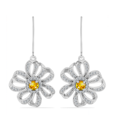 1 kép Ezüst Fülbevaló Ural Citrinnel és Fehér Topázzal, Y61552