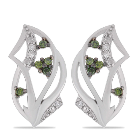 1 kép Ezüst Fülbevaló Zöld Gyémánttal és Fehér Gyémánttal, Y53671