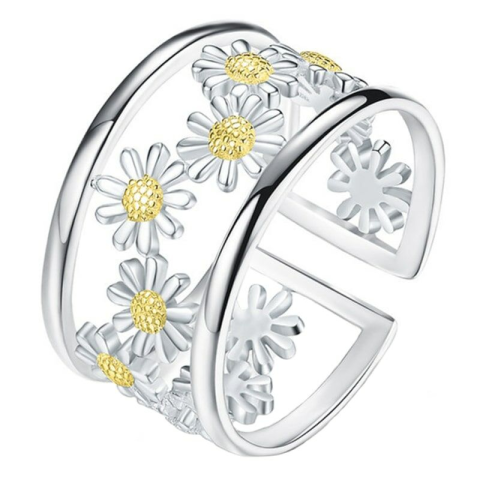 1 kép Ezüst gyűrű állítható margaréta gyűrű aranyozott 925 ezüsttel