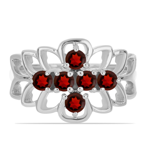 Ezüst Gyűrű Barton Gránátokkal - Virágos Elegancia ✨ Ez az ezüst gyűrű gyönyörű Barton gránátokkal díszített, virágos mintázatú ékszer, amely ragyogást kölcsönöz viselőjének. A gyűrű 0.91 karátos Barton gránátot tartalmaz, és körülbelül 3.31 gramm sú...