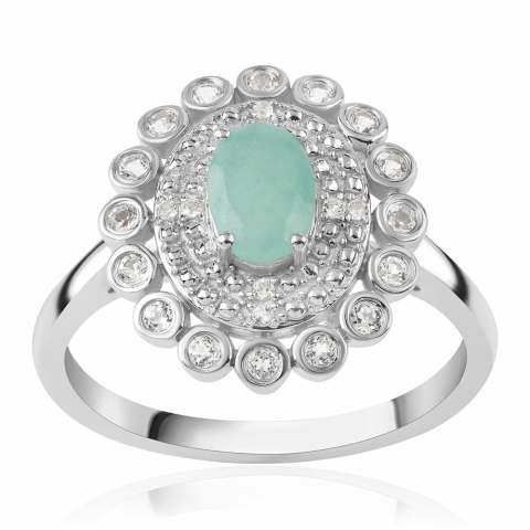 1 kép Ezüst Gyűrű Brazil Smaragddal (1.08ct) és Fehér Topázzal