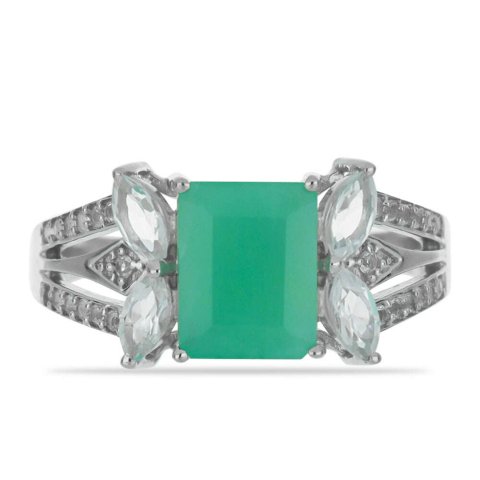 1 kép Ezüst Gyűrű Brazil Smaragddal és Fehér Topázzal, Y54445/59