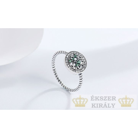 1 kép Ezüst gyűrű életfa motívummal, zöld, 8-as méret