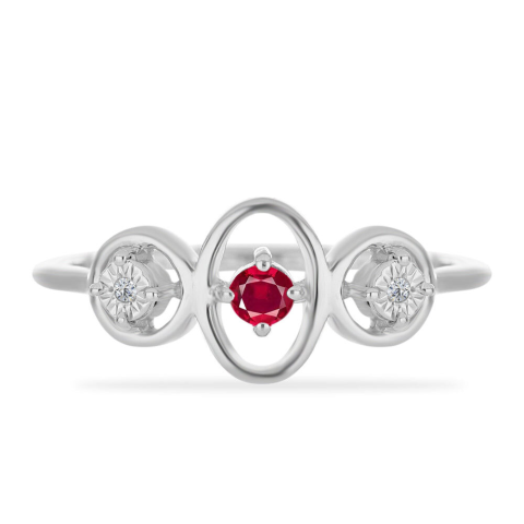 Ezüst Gyűrű Madagaszkári Rubinnal és Fehér Gyémánttal, Y58484/54