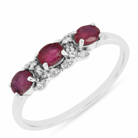 1 kép Ezüst Gyűrű Thai Rubinnal és Fehér Cirkónnal, TGJ0183/57