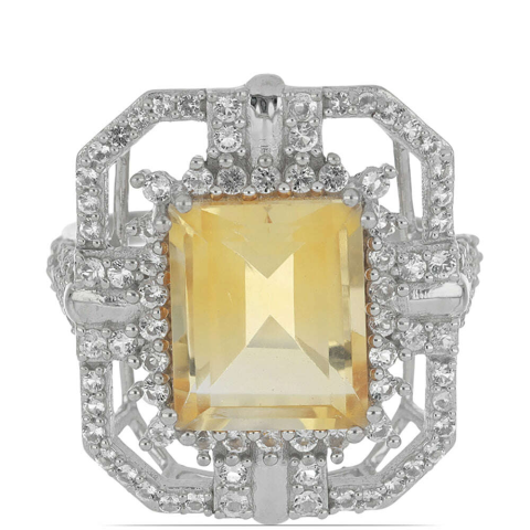 Ezüst Gyűrű Ural Citrinnel és Fehér Topázzal: Elegáns és ragyogó 💍 Ez az ezüst gyűrű egy 6.93 karátos Ural citrinnel és fehér topázokkal díszített, lenyűgöző ékszer. A gyűrű súlya kb. 7.21 gramm, mérete pedig 25.40 mm x 23.60 mm. Tökéletes választá...