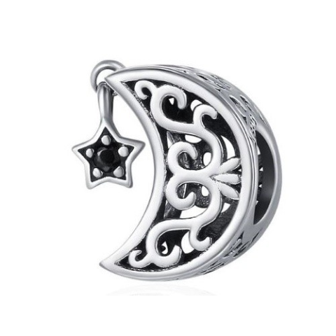 Az Ezüst Hold charm csillaggal egy igazán különleges darab, amely a varázslatos éjszaka hangulatát idézi meg. A 925 sterling ezüstből készült charm finom részleteivel és a holdat kísérő csillaggal bűvöli el viselőjét. Könnyedén felfűzheted kedvenc karkötő