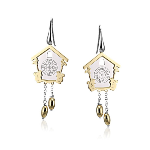 Ezüst, női kakukkos óra fülbevaló Részletek Különleges női, kakukkos óra fülbevaló, rose vagy aranyozott díszítéssel. Tökéletes kiegészítő mindennapi megjelenéshez. Kakukkos óra mérete: 45 mm x 20 mm (legszélesebb ponton) Fülbevaló teljes hossza: 60 m