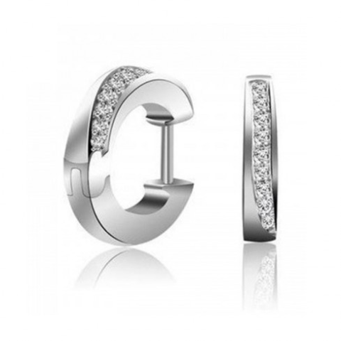 Ezüst karika fülbevaló Ezüst karika fülbevaló strasszokkal. Időtlen elegancia: apró cirkónium kövekkel kirakott ezüst karika fülbevaló. A fülbevaló külső átmérője: kb .17 mm. A termék anyaga: 925 sterling ezüst, amit a magyar szabályoknak megfelelően: 2g