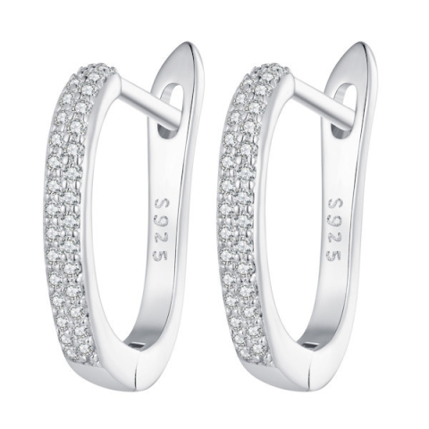 Ezüstből készült női karikafülbevaló platinabevonattal és cirkóniumkristállyal. Mérete 1.8 × 0.25 cm, súlya 2.2 g.