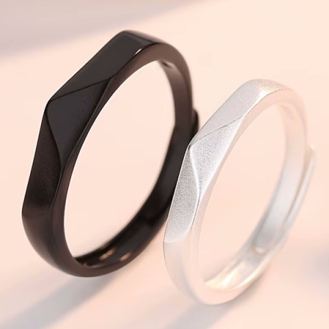 1 kép Ezüst karikagyűrű, egy pár, fekete-fehér