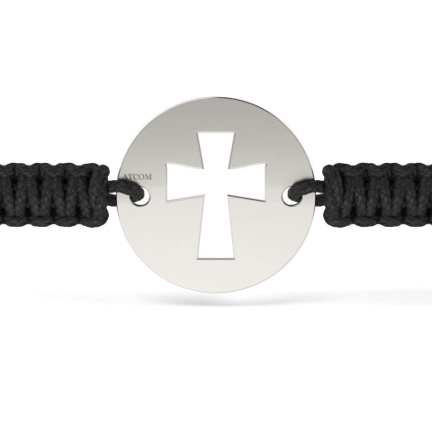Ezüst kereszt medál karkötő fekete zsinórral - Elegáns és hordható hitvallás ✝️ Ez az elegáns ezüst karkötő egy kör alakú medállal rendelkezik, melynek közepén egy finoman kidolgozott ortodox kereszt látható. A kereszt finom kivágással készült, ami mo...