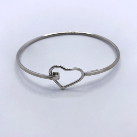 Ezüst női karperec szívvel Egyszerű, női ezüst karperec szívvel, melynek különlegessége a szívnél található kapocs. Ennek köszönhető, hogy konnyű a ki- és bekapcsolás. Praktikus kialakítása miatt divatos, letisztult megjelenést biztosít. Karperec átmérő: