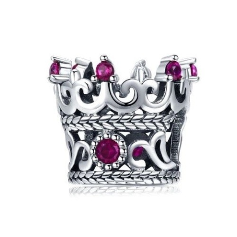 Fedezd fel az elegancia és a stílus új dimenzióját ezzel a csodálatos ezüst korona charmmal, amelyet apró lila cirkóniumkristályok díszítenek. A 925-ös sterling ezüstből készült charm tökéletes választás, ha szeretnéd feldobni karkötődet vagy nyakláncodat