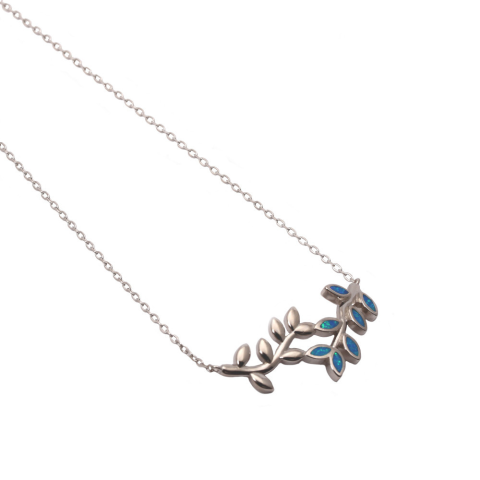 1 kép Ezüst levélmintás kék opál nyaklánc