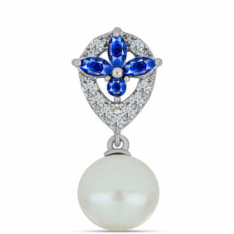 1 kép Ezüst Medál Ausztrál Kék Zafírral és Fehér Édesvízi Kagylógyönggyel, Y62402
