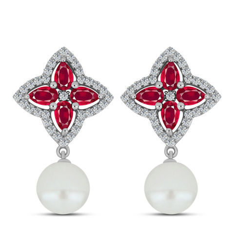 1 kép Ezüst Medál Madagaszkári Rubinnal és Fehér Édesvízi Kagylógyönggyel, Y62148
