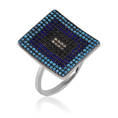 Ezüst Mosaic Gyűrű—téglalap, kék