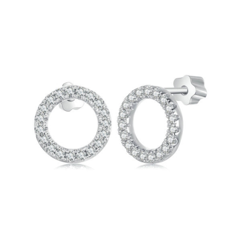 Ezüstből készült, fehérarany-bevonattal és moissanitkristállyal díszített bedugós női fülbevaló. Mérete 1.0 × 1.0 cm, súlya 1.7 g.