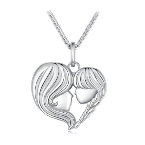 Ez az elegáns, 925 sterling ezüstből készült női nyaklánc nem csupán egy ékszer, hanem egy érzelmekkel teli szimbólum. A finoman kidolgozott medál anya és gyermeke közötti különleges köteléket ábrázolja, a szeretet és gondoskodás örök jelképét. A platina