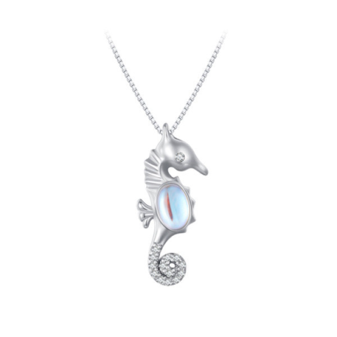 Ez a lenyűgöző ezüst női nyaklánc csikóhalmedállal a tenger varázslatos világát hozza el számodra. A 925 sterling ezüstből készült lánc finom eleganciát sugároz, amit a holdkő és a cirkóniumkristály ragyogása tesz igazán különlegessé. A 40 + 5 cm hosszúsá