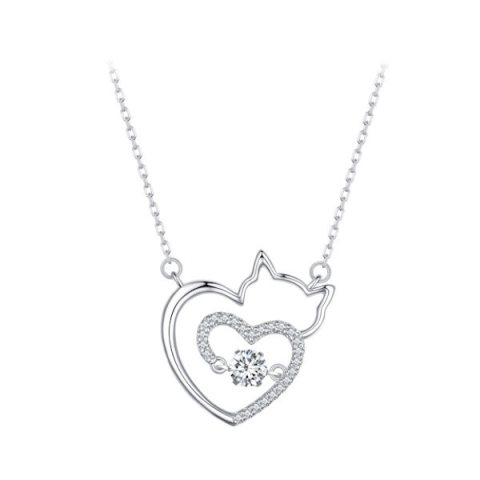 Ez az elegáns, 925 sterling ezüstből készült női nyaklánc tökéletes választás mindennapi viseletre vagy különleges alkalmakra. A finoman megmunkált, cirkóniumkristállyal díszített medál egy macskát ábrázol, amely szív alakú keretbe simul. A macska, mint m