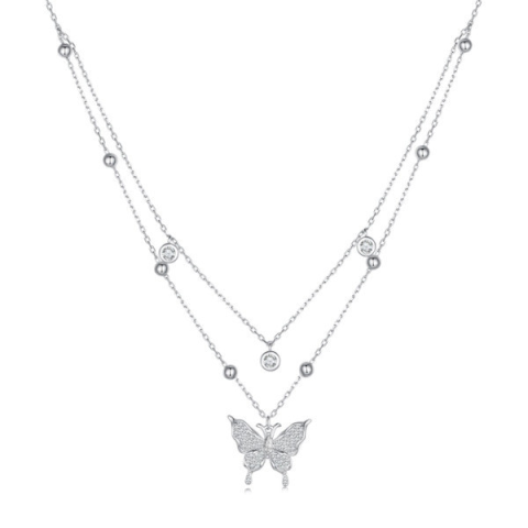 Ez az elegáns, 925 sterling ezüstből készült női nyaklánc tökéletes kiegészítője lehet bármilyen ruhatárnak. A platinabevonat biztosítja a tartósságot és a csillogást, míg a cirkóniumkristályokkal díszített pillangómedál finom ragyogást kölcsönöz az éksze