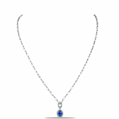 1 kép Ezüst Nyaklánc Ausztrál Kék Zafírral és Fehér Topázzal, Y60983