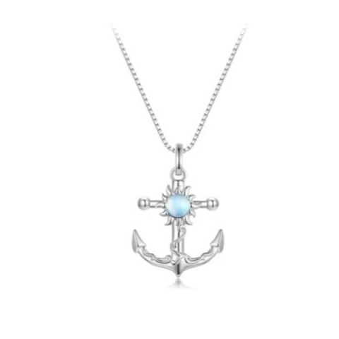 Engedd, hogy ez az elegáns ezüst nyaklánc a kedvenc kiegészítőd legyen! A 925 sterling ezüstből készült lánc finom csillogása tökéletesen kiemeli a horgony formájú medált, amelyet áttetsző kék üveg díszít. A horgony motívum már az ókorban is a stabilitás