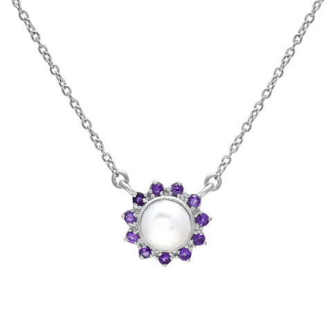1 kép Ezüst Nyaklánc Marokkói Ametiszttel és Fehér Édesvízi Kagylógyönggyel, XMP094