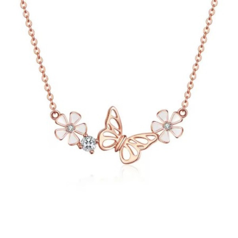 Ez a lenyűgöző 925 sterling ezüst nyaklánc rózsaarany-bevonattal és csillogó cirkóniumkristállyal kápráztat el mindenkit, aki csak rápillant. A finom, 45 cm hosszú lánc tökéletesen öleli körül a nyakat, míg a légies pillangó függő, melynek mérete 1.2×2.9
