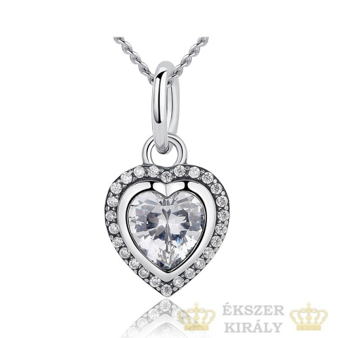 Ez a ragyogó ezüst nyaklánc egy elegáns, mégis visszafogott darab, amely tökéletesen kiegészíti bármilyen öltözéket. A szív alakú medál kövekkel van kirakva, ami különleges csillogást kölcsönöz neki. A szív motívum évszázadok óta a szeretet és a szenvedél