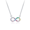 Ez a gyönyörű, 925 sterling ezüstből készült nyaklánc a végtelenszimbólummal nemcsak eleganciát, hanem mély jelentéssel bíró üzenetet is hordoz. A platina bevonat fényes ragyogása és a színes cirkóniumkristályok csillogása teszi igazán különlegessé ezt a