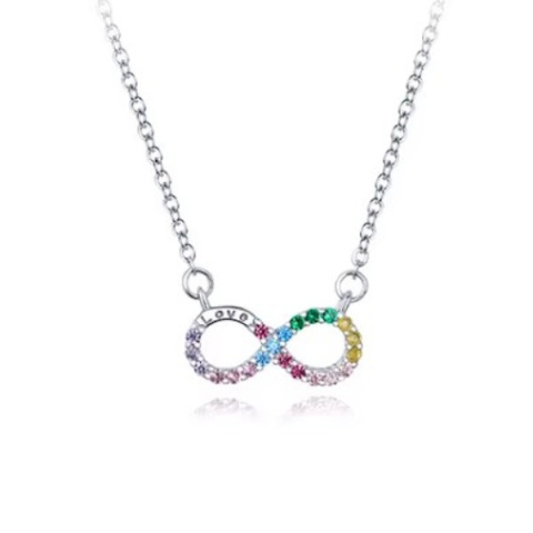 Ez a gyönyörű, 925 sterling ezüstből készült nyaklánc a végtelenszimbólummal nemcsak eleganciát, hanem mély jelentéssel bíró üzenetet is hordoz. A platina bevonat fényes ragyogása és a színes cirkóniumkristályok csillogása teszi igazán különlegessé ezt a